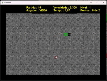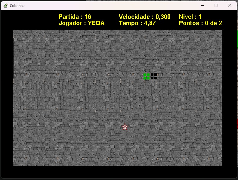 Este projeto recria o clássico jogo da Cobrinha (Snake Game), adicionando melhorias e adaptações próprias para tornar a experiência mais completa e divertida.